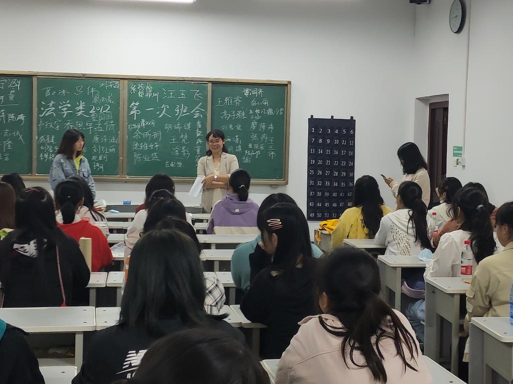 班会由助班逯家希主持,本次会议共五项。会议第一项由班主任点名熟悉同学,助班收取开学相关材料。会议第二项助班自我介绍,由黄尚菁、周佳雯、逯家希依次进行自我介绍。会议第三项方巍巍老师自我介绍以及谈谈对同学们的期许,方巍巍老师说:“希望在之后的老员工活里可以与同学们共同进步。”之后是新生们的自我介绍,每位同学都在黑板上写了自己的名字,留下了自己在大学浓墨重彩的一笔。最后由助班强调了之后军训的注意事项,班会结束。