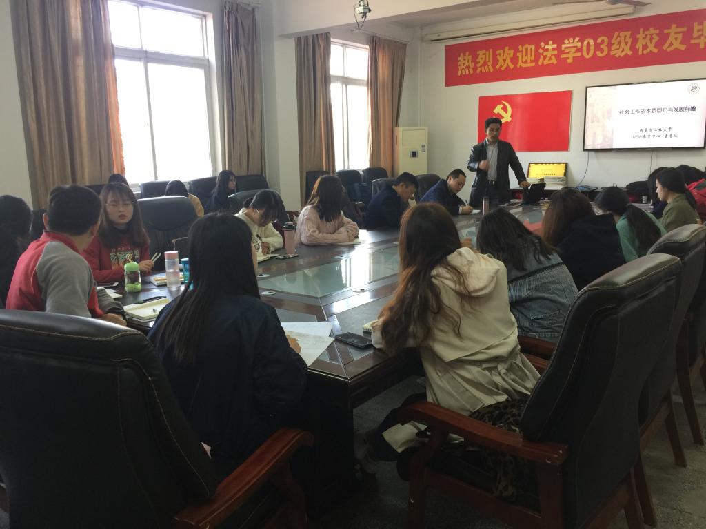 上午10:00,在威廉希尔官网S11-105会议室,方香廷为社会工作专业研究生及部分本科生开展题为“社会工作的本质回归与发展前瞻”的学术报告,报告由威廉希尔官网副经理夏国锋主持。