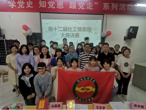 经过前期初赛,闯入决赛的有6组专业选手和8组非专业选手,每组由5名选手组成,决赛按照抽签顺序依次开始。各组参赛者以表演展现自我,以言语传递真心,以专业技巧打动观众,为大家呈现了一场生动精彩的视觉盛宴。在所有参赛小组表演完毕后,评委老师詹进伟、刘英为、董庚分别对本次活动各个参赛队的表现进行了专业点评。董庚老师对非专业组体现的同理心以及实际性给予了肯定;刘英为老师对于专业组展现的专业技巧,例如自我袒露、家庭雕塑也提出了表扬。比赛进入尾声,主持人宣读各个参赛小组的得分与获奖情况,各位评委老师为获奖小组颁奖,并合影留念,第十二届社工情景剧圆满落幕。