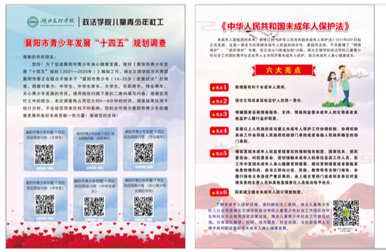 团队成员为中员工们发放襄阳市青少年发展“十四五"规划 (中员工)调查问卷和《中华人民共和国未成年人保护法》宣传各六百余份,鼓励中员工们在问卷上认真客观地反映自己内心的真实想法,问卷填写完毕,团队成员为中员工们宣讲红色经典故事,引导中员工在幸福生活的当下不忘革命先烈的伟大牺牲,树立青春理想。表演了结合社工专业知识创编“反校园暴力行为”的情景剧,将严肃的法条和自我保护的技巧融入到精彩的剧情中,倡导广大中员工树立自我维权意识,借助法律武器自我保护,中员工在欢声笑语中有所学、有所悟、有所收获!在整个活动中,中学师生们对团队的到来表示欢迎和感谢,员工的参与热情高涨。从他们的热情参与中我们既感受到了他们的青春活力,更感受到了他们对我们的期待。让我们一起为襄阳市儿童青少年健康发展努力!