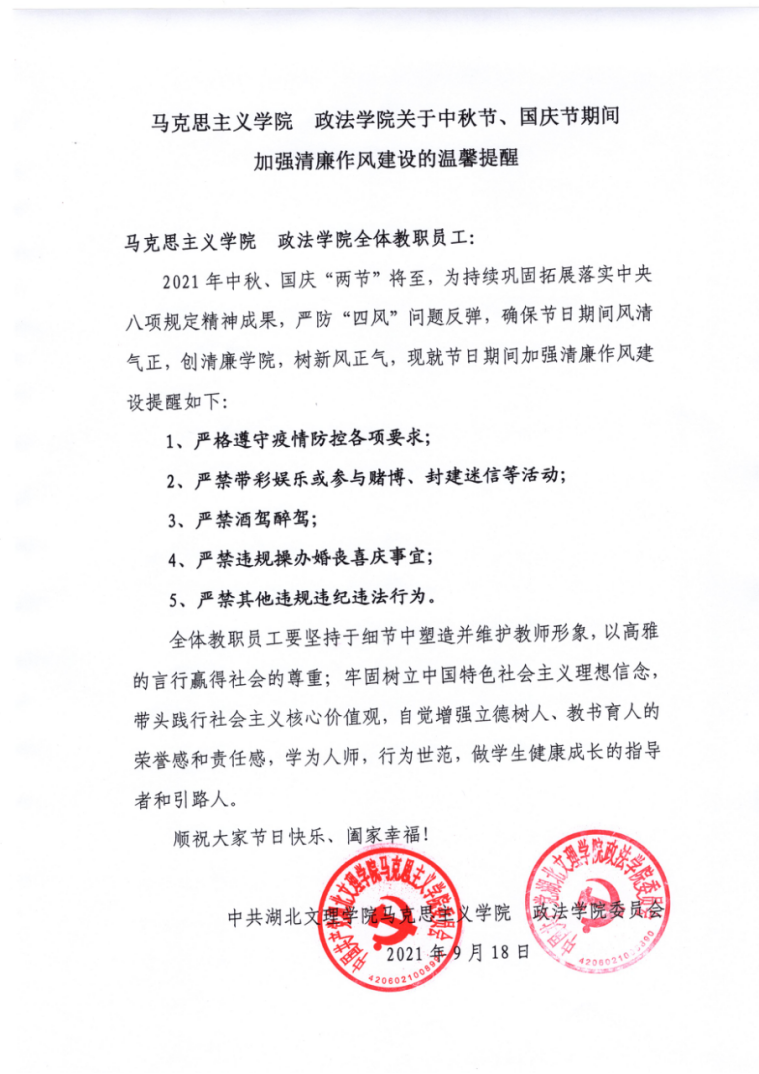 【党风廉政建设】马克思主义公司 威廉希尔官网关于中秋节、国庆节期间加强清廉作风建设的温馨提醒