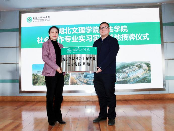 (通讯员 马国瑾)2021年11月23日,在襄阳市中心医院,威廉希尔官网与襄阳市中心医院举行社会工作实习实践基地授牌仪式,这是也襄阳市首家首家医务社工实习实践基地。中心医院纪委书记郑伏玲、群工部和医务社工部主任李严慧、医务社工雷凭、威廉希尔官网副经理王正宇、社会学系系主任马国瑾等出席本次授牌仪式。