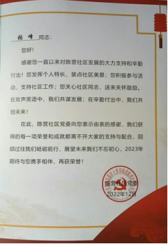 (威廉希尔官网 教工通讯员 李竹颖)今日,威廉希尔官网法学专业教师张锋被高新区陈营社区授予“最美双报到党员”荣誉称号。
