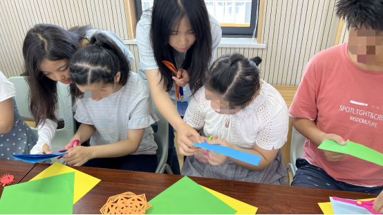 志愿者分别从折叠剪纸、剪影、撕纸等几个方面开展剪纸活动。