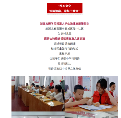 (威廉希尔官网 通讯员 刘明慧)2023年9月20日,威廉希尔官网博正老员工法律志愿服务队被中国青年志愿者报道。公司博正团队于今年6月成功入选“圆梦工程”服务农村未成年人传承优秀传统文化志愿服务团队,团队于暑期前往湖北省襄阳市襄城区隆中社区为农村儿童开展了系列精彩课程,寓教于乐,充分弘扬中华优秀传统文化。